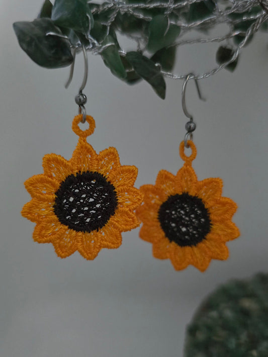 Sunflower Lightweight Embroidered Earrings with Hypoallergenic hooks