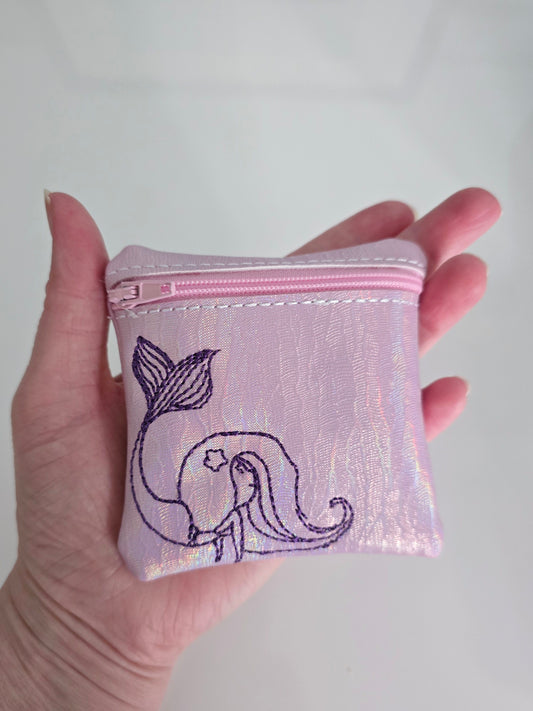 Pink Mermaid Vinyl Coin Purse - Zip Bag - Imperfect