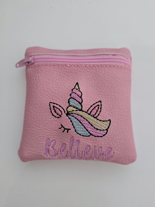 Pink Rainbow Unicorn Vinyl Coin Purse - Zip Bag