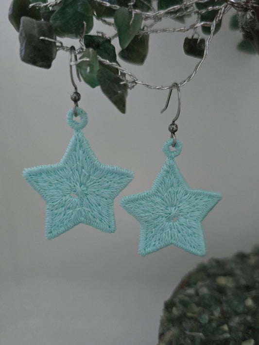 Star Lightweight Embroidered Earrings with Hypoallergenic hooks