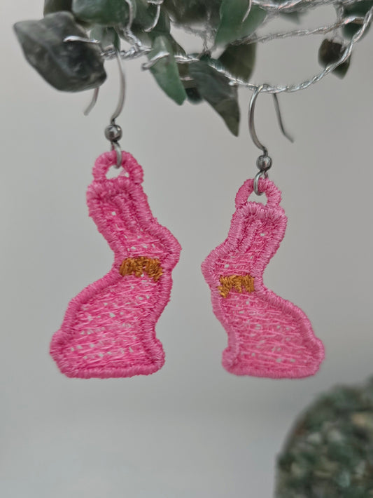 Chocolate Easter Bunny Lightweight Embroidered Earrings with Hypoallergenic hooks