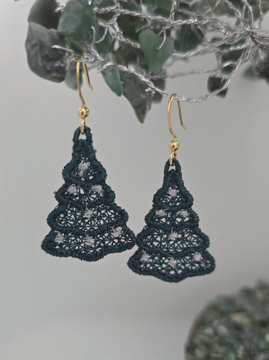 Christmas Tree Lightweight Embroidered Earrings with Hypoallergenic Hooks
