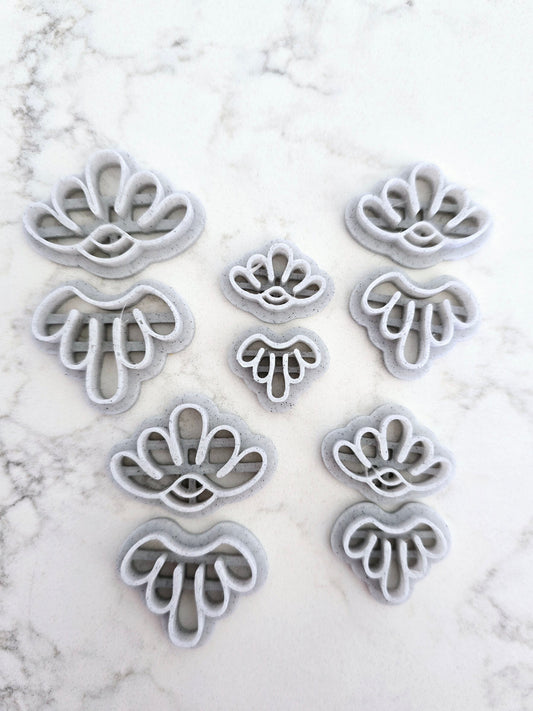 Perfectly Imperfect Print - Mystical Eye Flower Polymer Clay 3D Printed Embosser only Cutter - set of 5 pairs (10 embsossers)