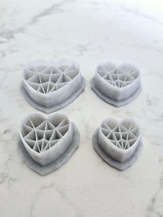 Geometric Heart Polymer Clay 3D Printed Cutters - set of 4 - Clearance