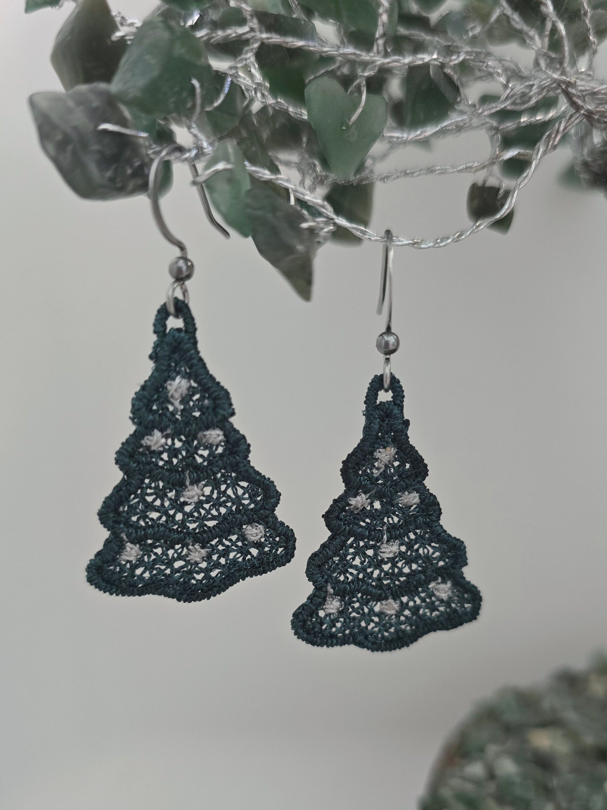 Christmas Tree Lightweight Embroidered Earrings with Hypoallergenic Hooks