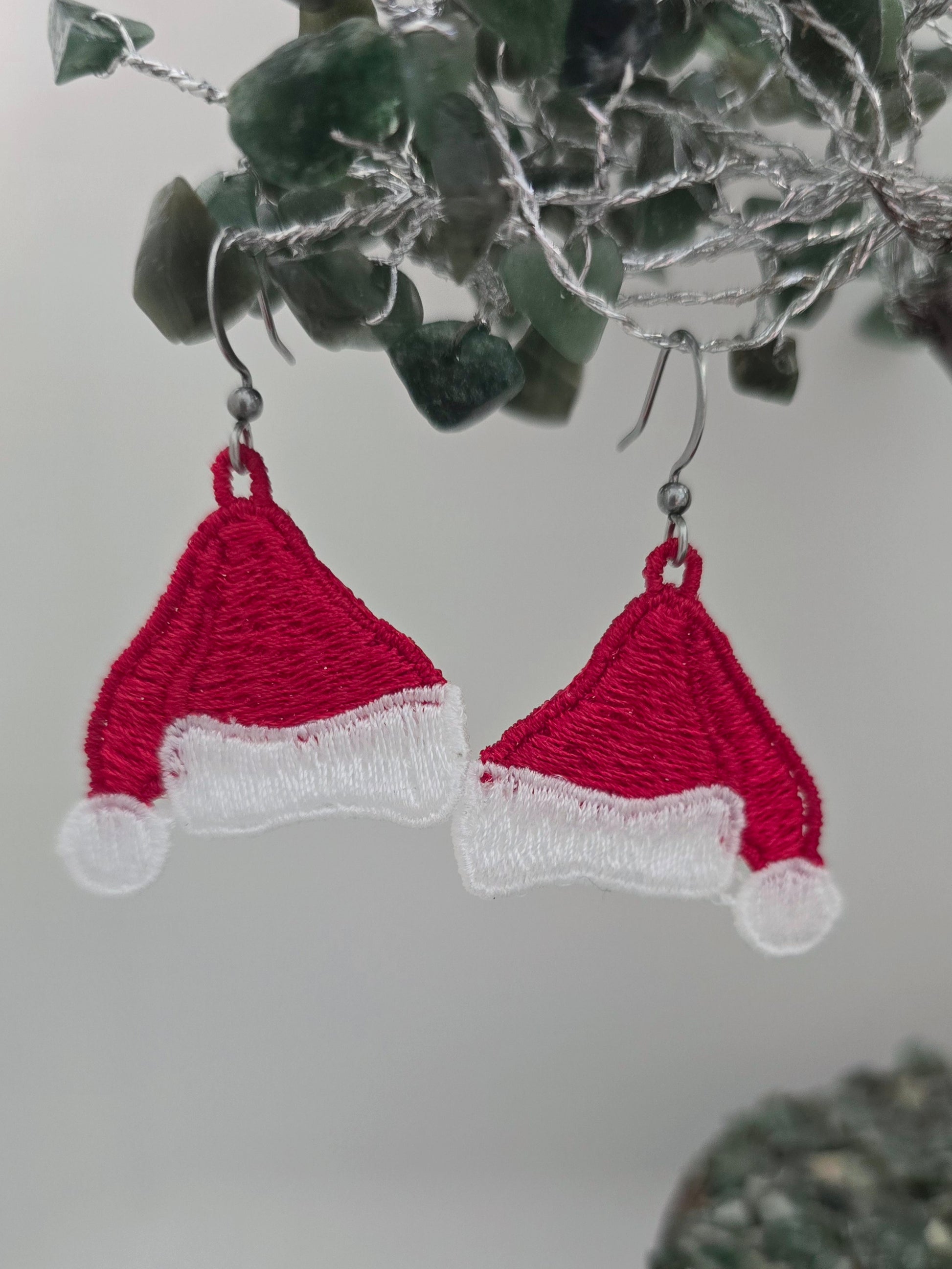 Christmas Santa Hat Lightweight Embroidered Earrings with Hypoallergenic hooks