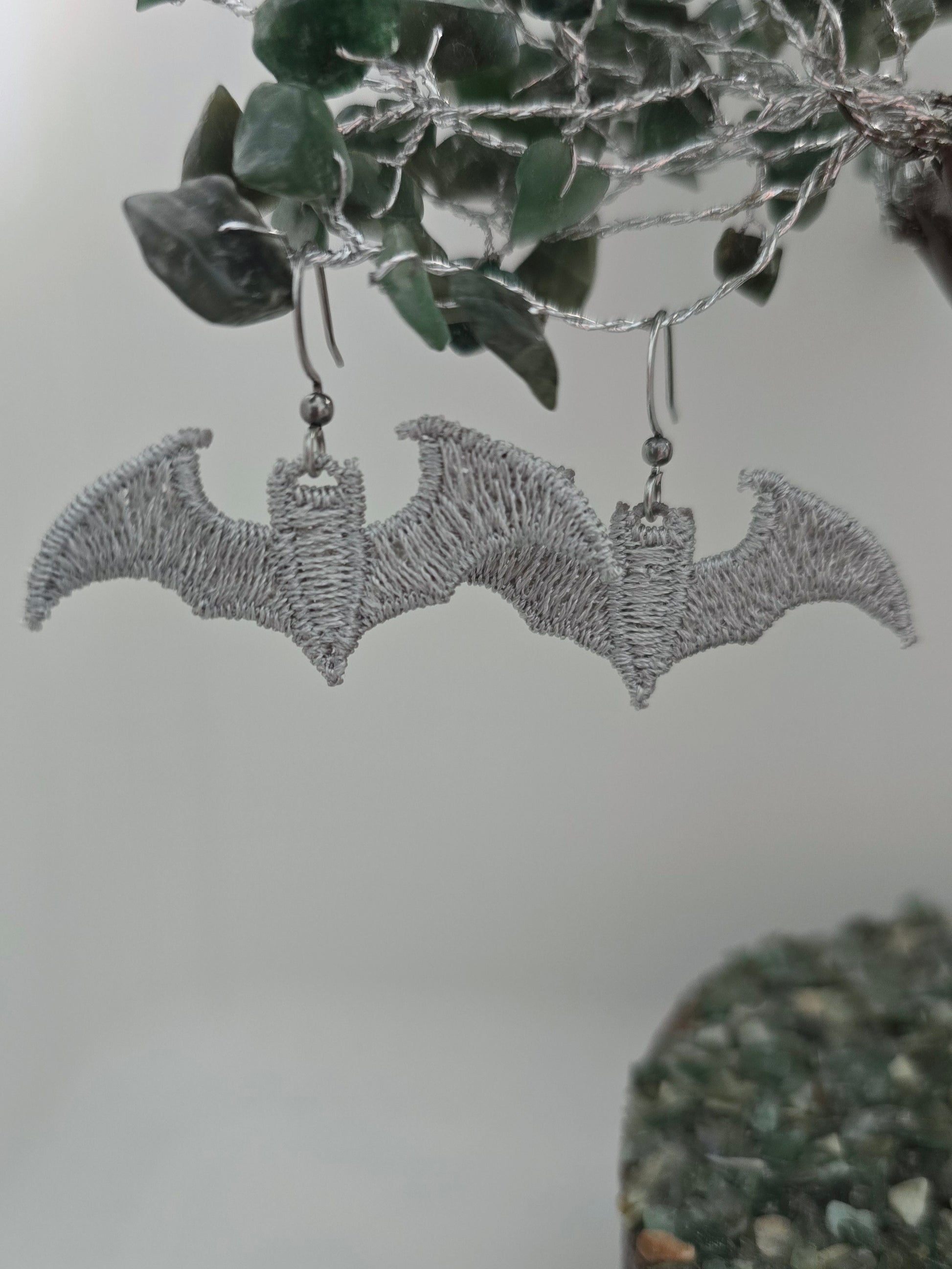 Halloween Bat Lightweight Embroidered Earrings with Hypoallergenic hooks