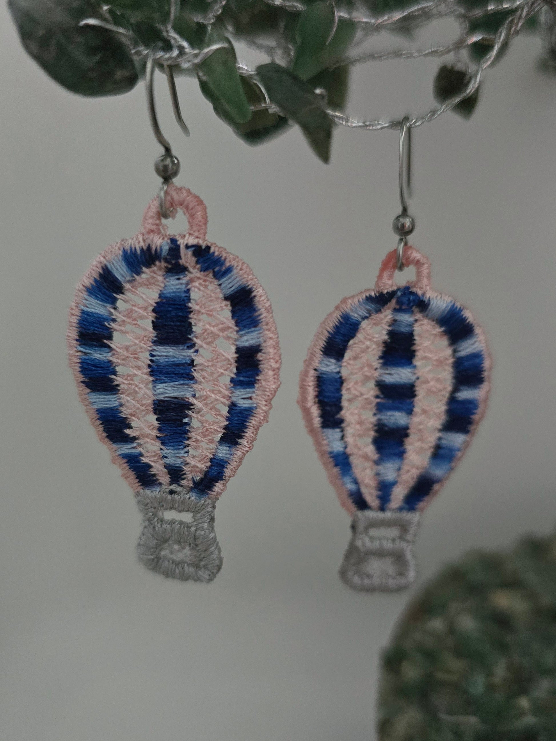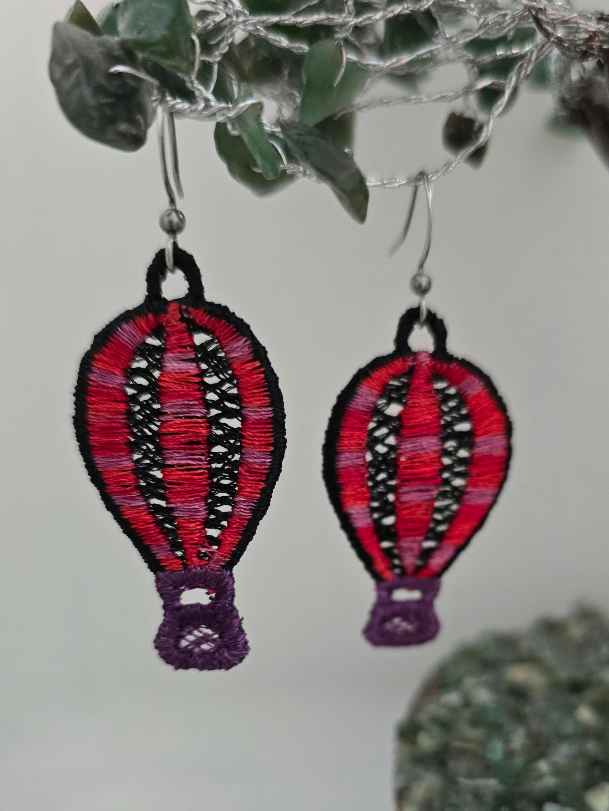 Hot Air Balloon Lightweight Embroidered Earrings with Hypoallergenic hooks