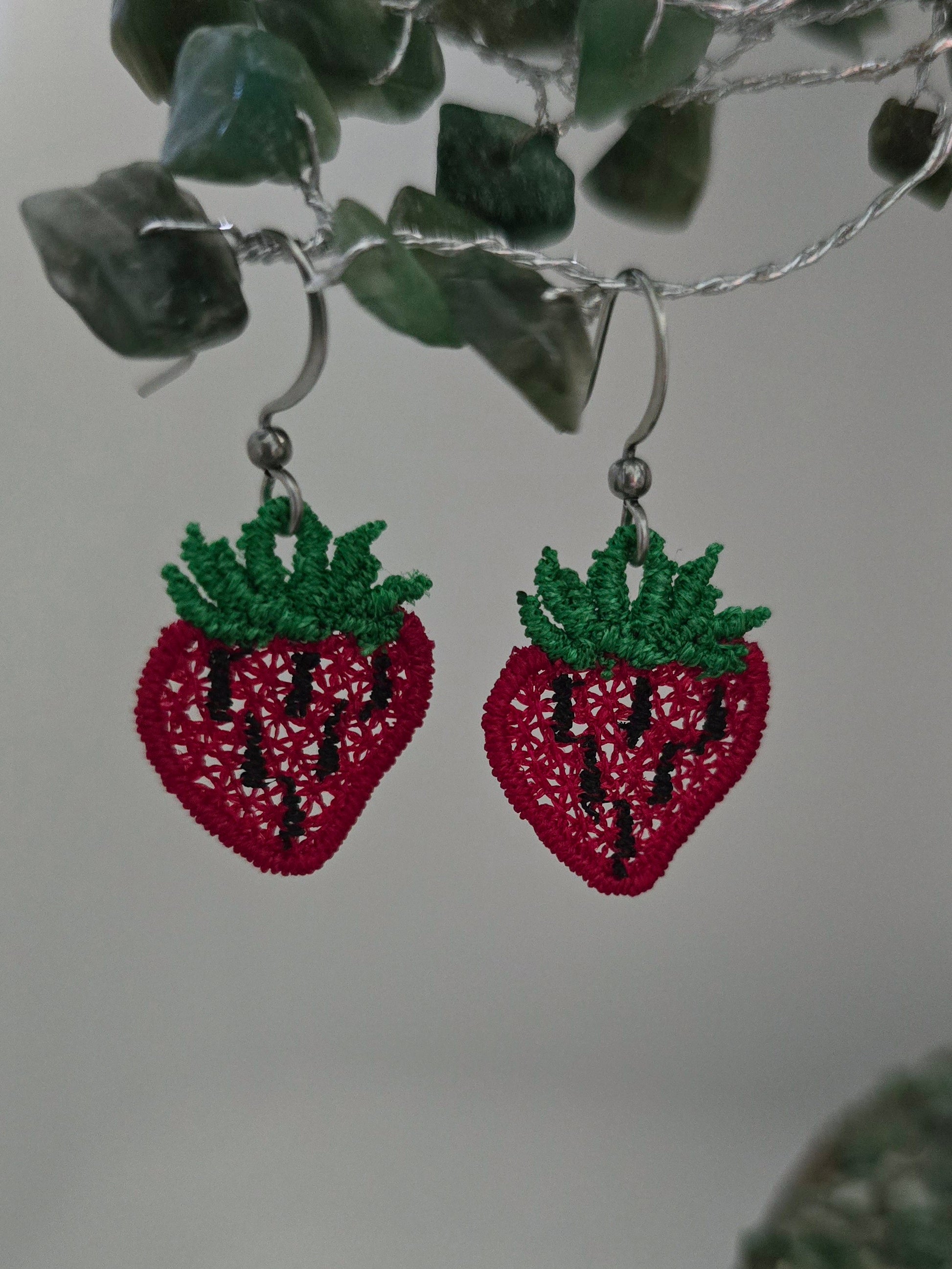 Strawberry Lightweight Embroidered Earrings with Hypoallergenic hooks